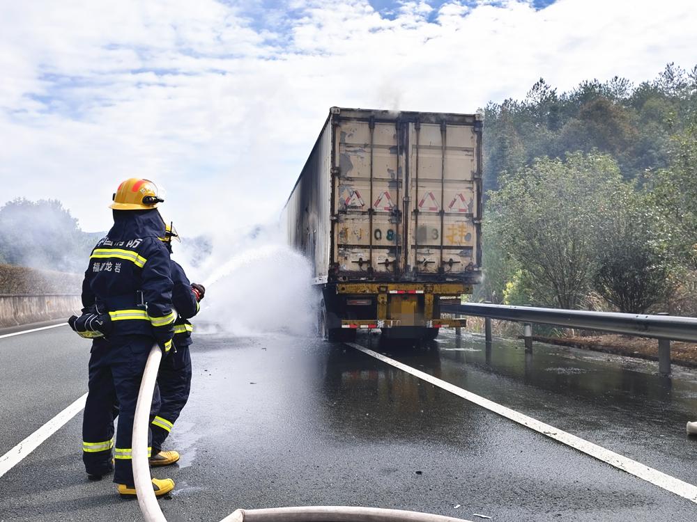 本報訊 近日,武平縣十方鎮(zhèn)境內(nèi)G25長深高速金雞嶺隧道出隧道口往龍巖方向約3公里處,一輛正在行駛的大型貨車突然起火。接警后,武平縣消防救援大隊立即調(diào)派南門、十方消防救援站消防員趕赴現(xiàn)場,成功撲滅明火,并消除安全隱患。 消防員現(xiàn)場勘查發(fā)現(xiàn),起火車輛為一輛運(yùn)輸快遞的大型廂式貨車,車輛車廂部分正處于猛烈燃燒階段,現(xiàn)場濃煙彌漫,車內(nèi)滿載的快遞包裹已被引燃,情況緊急。