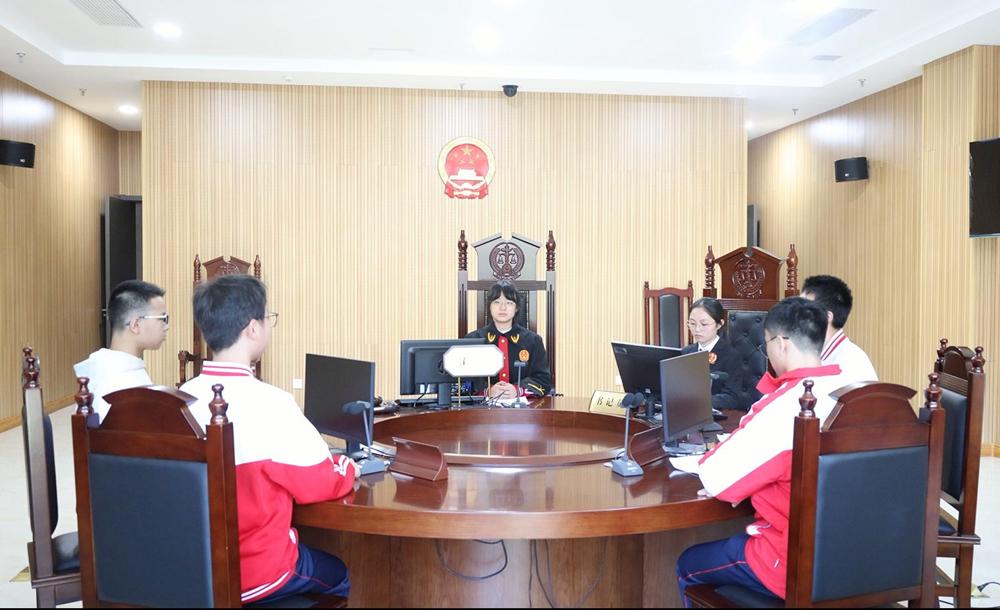 近日,閩清縣人民法院邀請轄區中學的學生到法院開展“沉浸式”法治體驗活動,讓學生在參觀、旁聽、體驗中解鎖法治密碼。圖為學生體驗圓桌法庭。 |