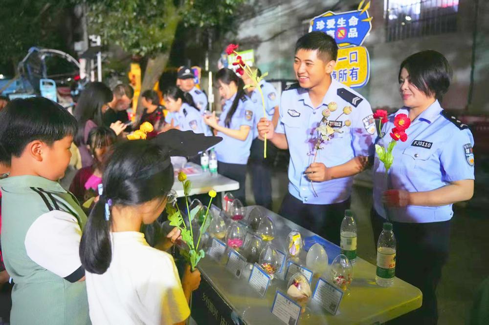 10月16日,在“螢火蟲計劃”清源站,民警與群眾在趣味普法互動區互動。 “‘螢火蟲計劃’開展以來,摒棄了傳統宣傳的說教模式,通過深挖壽寧本土文化基因,打造貼合鄉村實際的特色宣傳載體,推動農村交通安全宣傳從‘千村一面’的同質化轉向‘一村一品’的特質化。”徐曉宇介紹,“1個主題夜校”作為“螢火蟲計劃”活動的核心載體,是鄉村安全宣傳的重要陣地。該局將“夜校課堂”搬進村級活動廣場、祠堂、小賣部門口等村民夜間聚集地,每周固定在一個晚上開課,并推出“星空影院”“乘涼夜校小課堂”“板凳議事角”等特色模塊。“課堂”現場不僅陳列本地典型事故案例展板、事故車輛殘骸實物,還設置互動游戲體驗區,通過沉浸式、場景化的布設,讓原本枯燥的安全知識變得直觀易懂,大幅提升普法宣傳的吸引力與感染力。